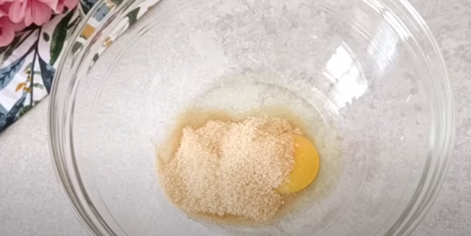 In una ciotola capiente, sbatti l’uovo con lo zucchero fino a ottenere un composto spumoso e ben amalgamato. Puoi farlo con una frusta a mano o con uno sbattitore elettrico. Aggiungi il latte e l’olio, continuando a mescolare per ottenere una miscela omogenea.